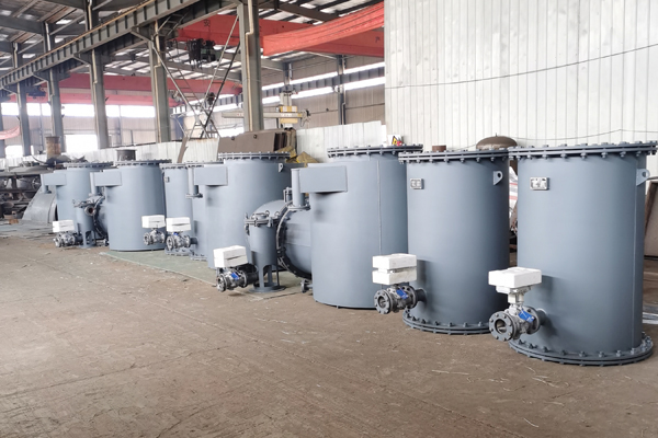 分匯器是一個三通閥,通過導(dǎo)向板的切換可使膠球進(jìn)入需要清洗的一側(cè)凝汽器中工作。一般一臺機(jī)組需兩臺分匯器,其進(jìn)口通徑為DN100,分配口為DN89,膠球投用時可通過窺視窗觀察運(yùn)行情況。